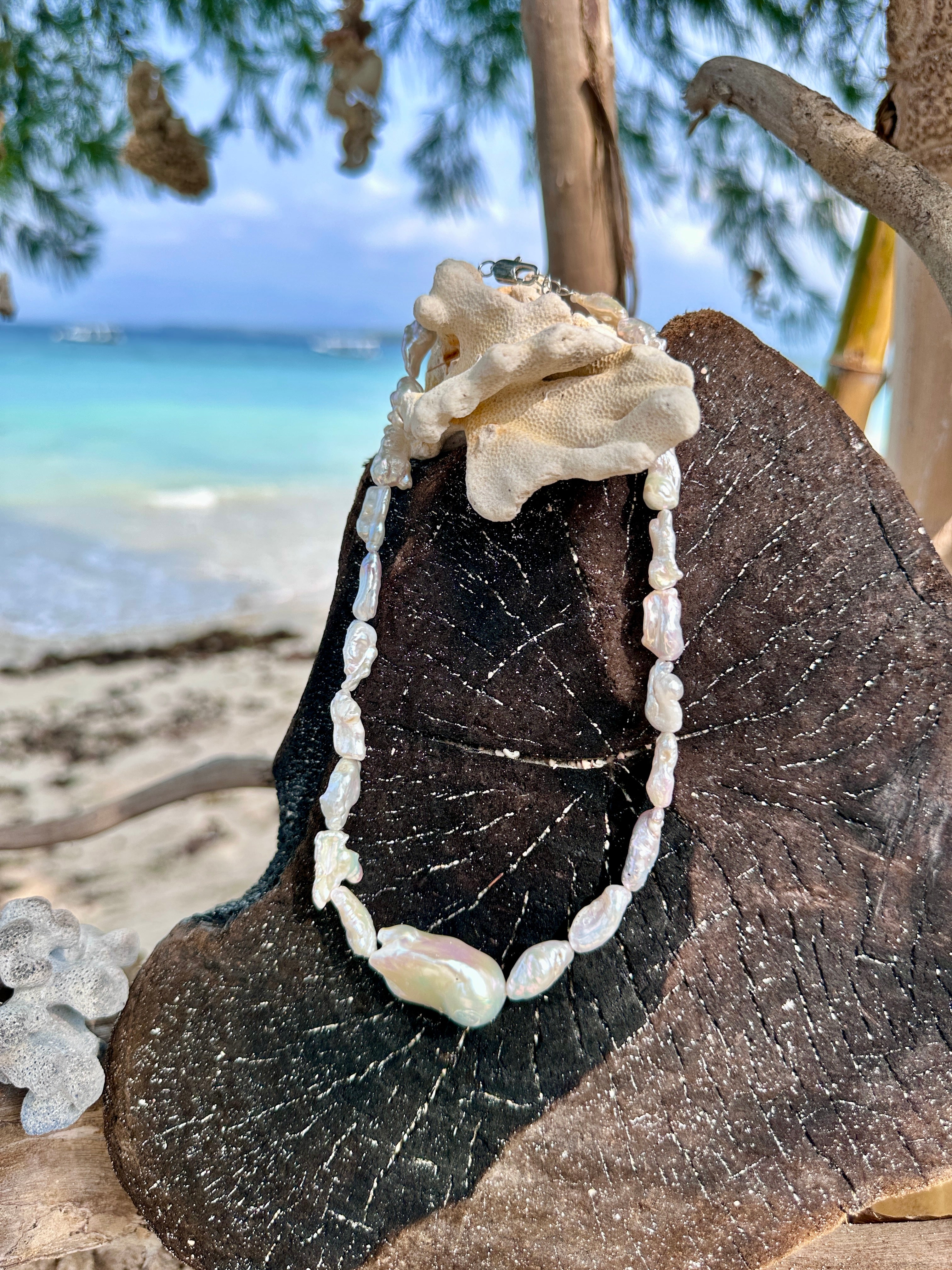 Born from island life, salty air and sun-tanned skin. Moon Ripples captures the feeling of being away —when days stretch longer, thoughts grow quieter, and beauty feels effortless. Natural pearls, embraced in their imperfections. A reflection of freedom, warmth and gentle rhythm of island days - a reminder of lightness, wherever You are. Jewelry that carries a mood.